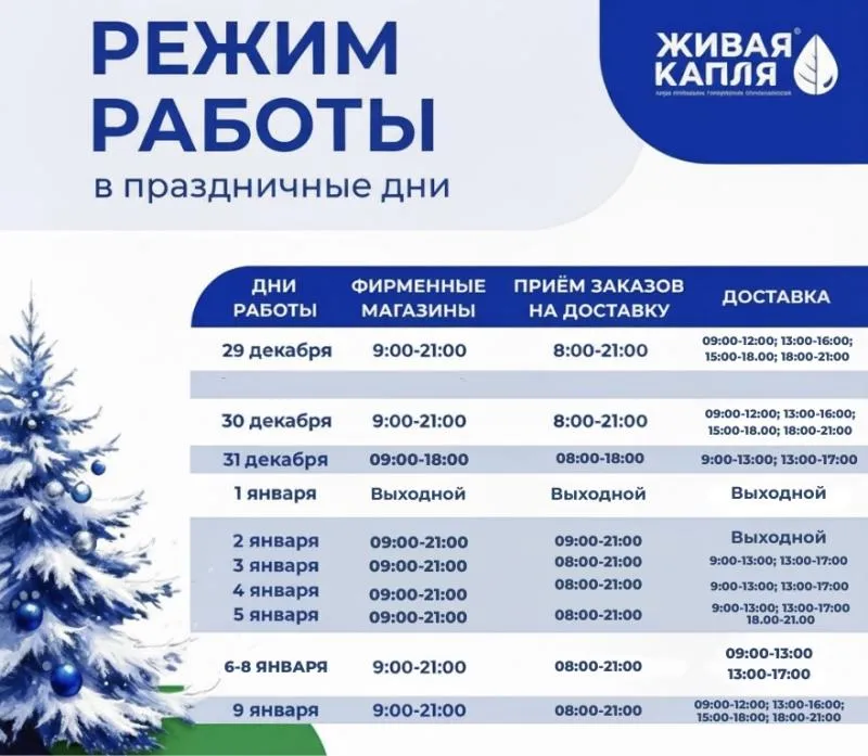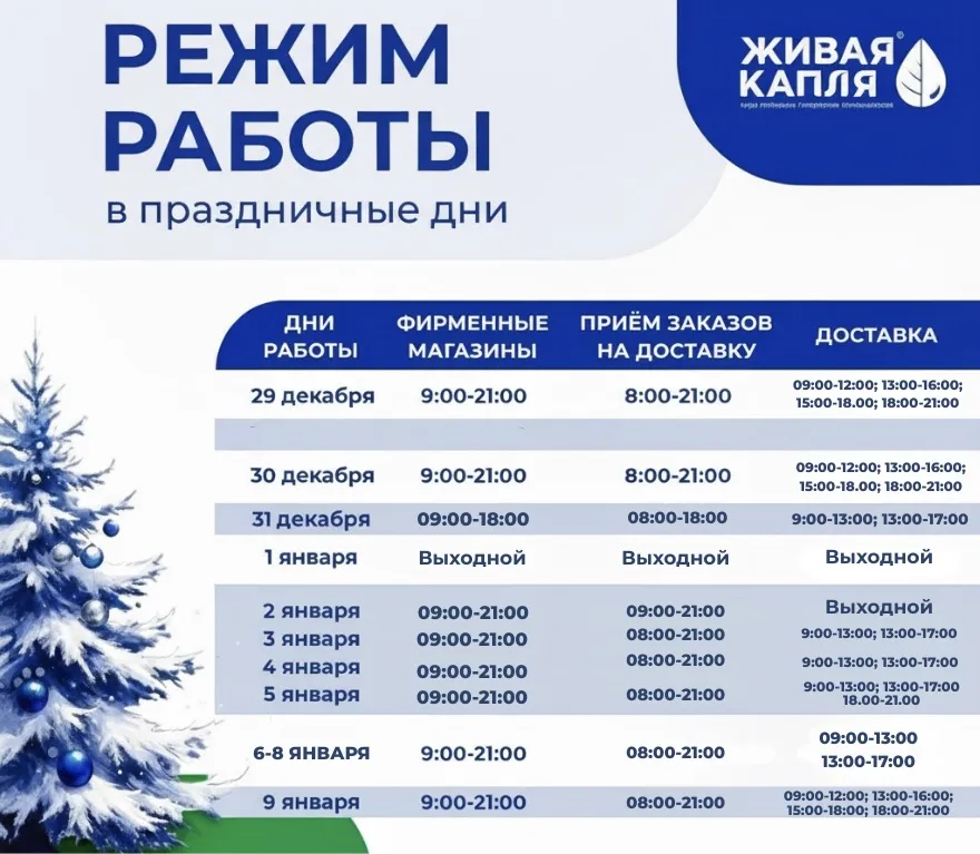 | 5 января | 9.00-21.00 | 8.00-21.00 | 9.00-13.00; 13.00-17.00; 18.00-21.00 |